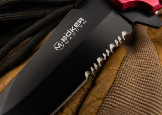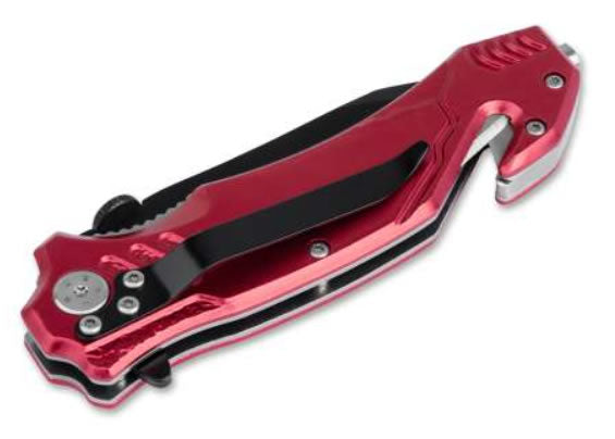 Construcția solidă din aluminiu anodizat roșu, inspirată din echipamentele de salvare, asigură durabilitate și o prindere sigură. Mecanismul Linerlock oferă protecție suplimentară, prevenind închiderea accidentală a lamei în timpul utilizării.