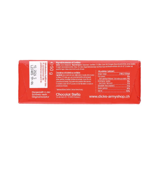 Tableta de 50 g este ideală pentru consum zilnic, pauze energizante, activități outdoor ușoare sau ca mică gustare dulce în deplasare. Datorită ingredientelor atent selecționate și standardelor elvețiene de producție, produsul garantează un gust constant și o calitate ridicată.