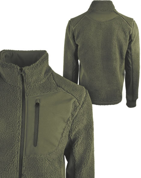 Exteriorul tip sherpa-fleece, cu fir înalt asemănător blănii, asigură un nivel excelent de izolație termică, iar căptușeala moale din poliester pongee oferă un confort deosebit. Inserțiile laterale din softshell rezistent sporesc durabilitatea și flexibilitatea, transformând această jachetă într-un echipament versatil și fiabil pentru vreme rece.