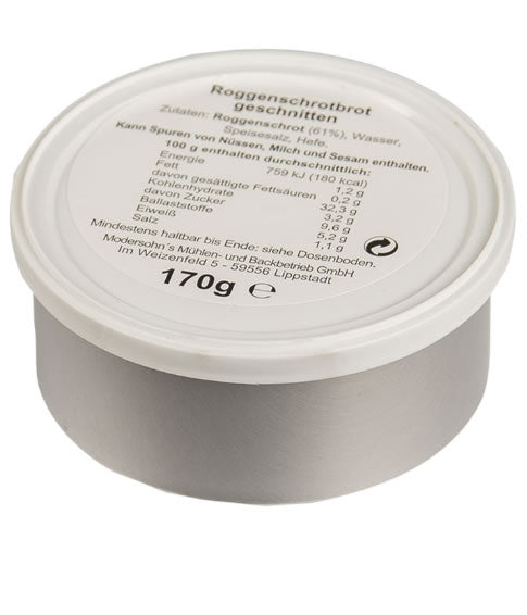 BW Dosenbrot 170 g este pâinea originală la conservă utilizată de Bundeswehr, concepută pentru fiabilitate, depozitare îndelungată și consum în condiții dificile. Realizată din grâu de secară măcinat grosier (61%), această pâine oferă un aport nutritiv echilibrat și o sațietate ridicată.