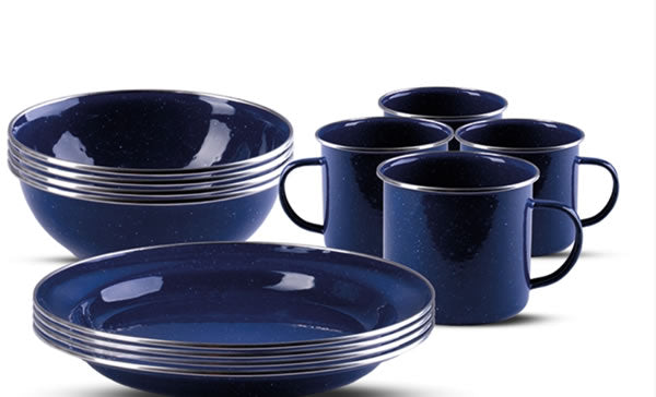 Setul include farfurii, boluri și căni, toate ușor de curățat și rezistente, potrivite pentru aventuri outdoor. Designul clasic, în culoare albastru vibrant, combină funcționalitatea cu estetica, făcând setul ideal atât pentru activități în aer liber, cât și pentru picnicuri sau uz temporar acasă.